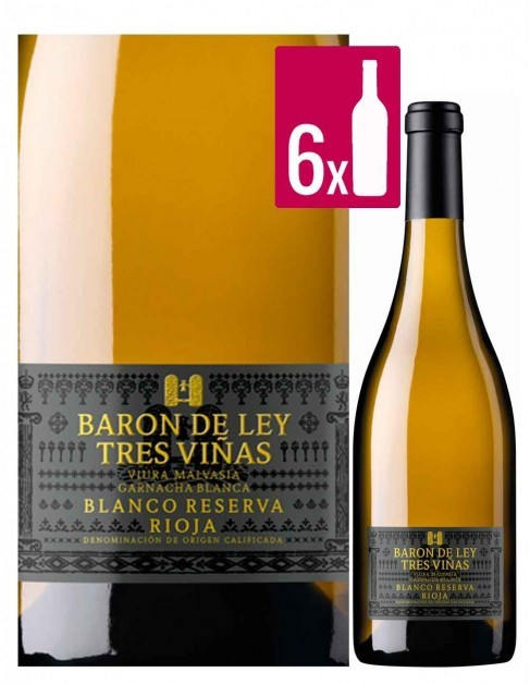Barón de Ley 3 Viñas Blanco Reserva es un vino blanco reserva elaborado con uvas Viura, Malvasía y Garnacha Blanca de viñedos situados en el Valle del Najerilla. La elaboración de cada variedad se hizo por separado y el “coupage” final envejeció en roble americano durante 12 meses. Posteriormente permanece en botella durante al menos 1 año más.