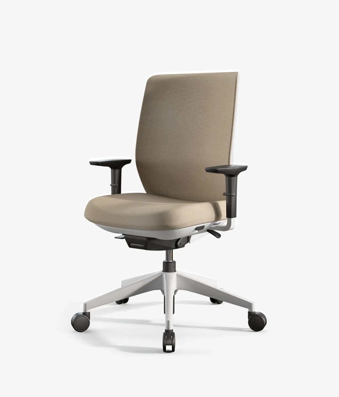 7 noviembre, 2025Silla de oficina Trim beige con base de aluminio blanca